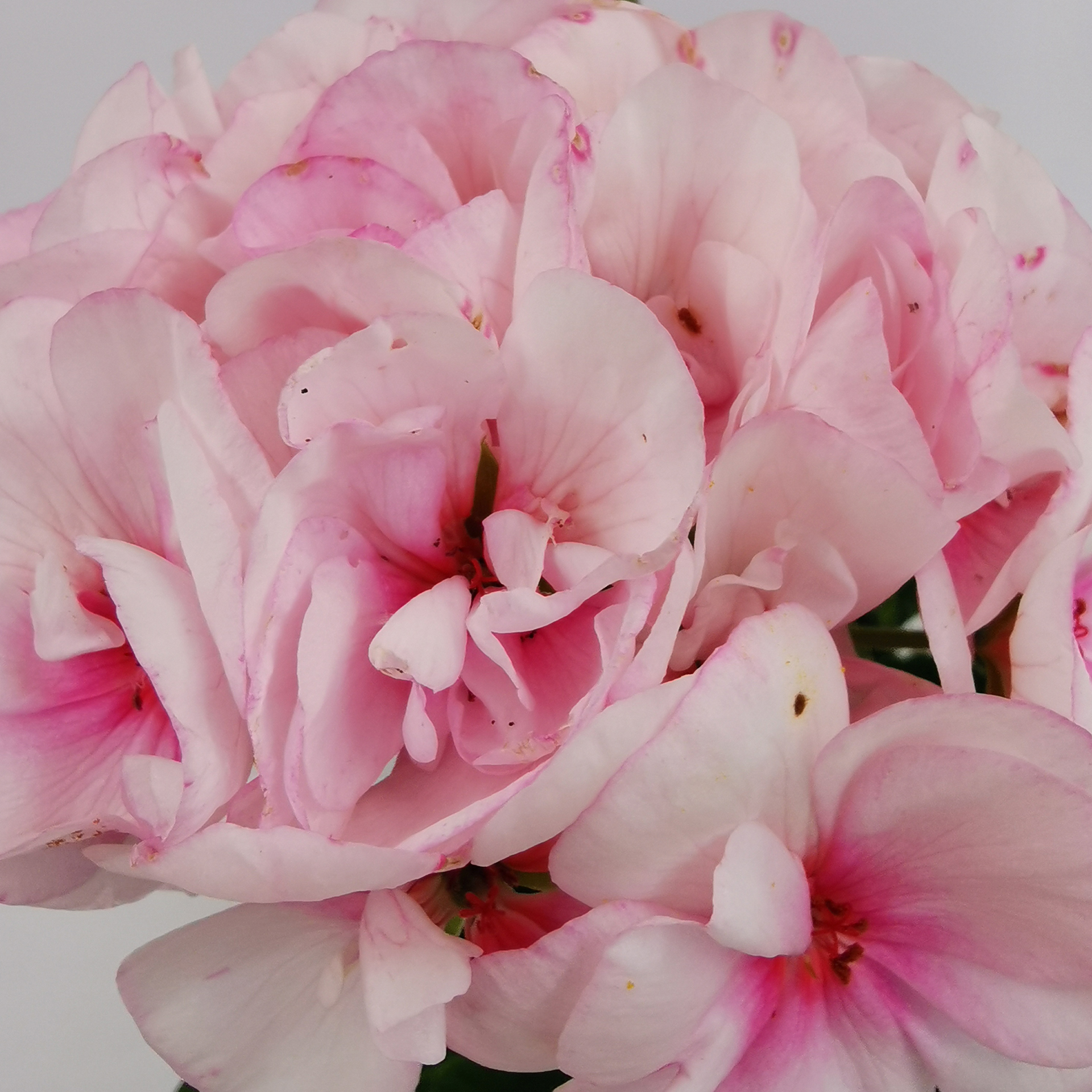 Die Geranie gehört zu den beliebtesten Balkonpflanzen, weil sie ein sehr robuster Dauerblüher ist. In unserer Gärtnerei kultivieren wir über 30 verschiedene Sorten von stehenden und hängenden Geranien. Die 'Estelle Appleblossom' ist kompakt, mittelstark wachsend. Sie hat kräftig grünes Laub und apfelblütenfarbene Blüten mit dunklerem Auge. Von Mai bis Oktober wachsen immer neue Blüten nach. Sie erreicht eine Wuchshöhe von 30-50cm.