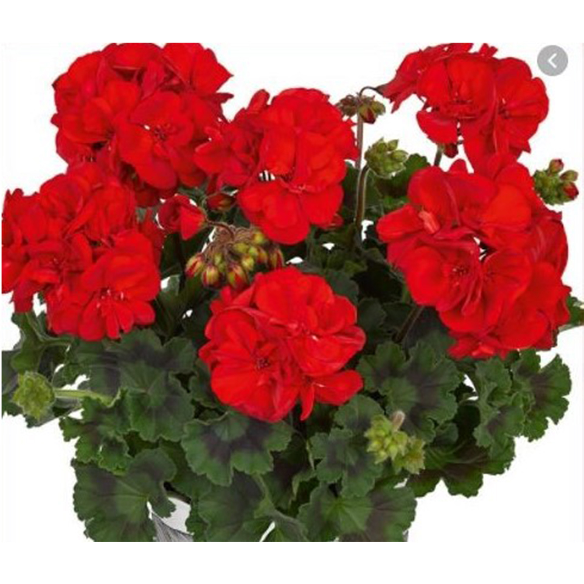 Die Geranie gehört zu den beliebtesten Balkonpflanzen, weil sie ein sehr robuster Dauerblüher ist. In unserer Gärtnerei kultivieren wir über 30 verschiedene Sorten von stehenden und hängenden Geranien. Die 'Dolce Vita Mylena' ist kompakt, mittelstark wachsend. Sie hat dunkelgrünes Laub und leuchtend feuerwehrrote Blüten. Von Mai bis Oktober wachsen immer neue Blüten nach. Sie erreicht eine Wuchshöhe von 30-50cm.