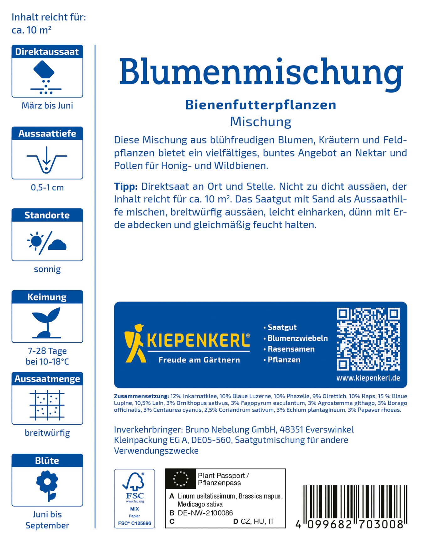 Diese Artenzusammenstellung ist die Nahrungsgrundlage für Honig- und Wildbienen. Blütenstaub und Nektar sind für die Bienen lebensnotwendig. Der Pollen dient als Aufbaufutter, und aus dem Nektar und dem Honigtau bereiten die Bienen den Honig.