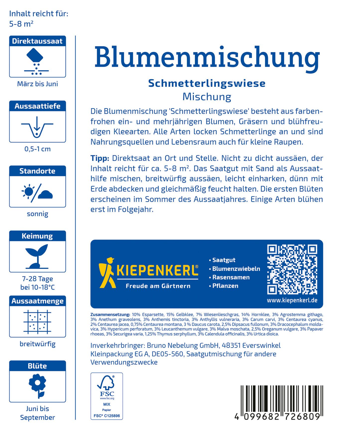 Wer mithelfen will, das ökologische Gleichgewicht wieder herzustellen, der sollte für unsere Insekten Nahrungspflanzen aussäen. Im besonderen fliegen Schmetterlinge nur, wenn sie Futterpflanzen für ihre Raupen vorfinden. In dieser Mischung sind Pflanzenarten, die für die Entwicklung und die Zeit des Schmetterlingsfluges entscheidend sind. Ein- und mehrjährig.