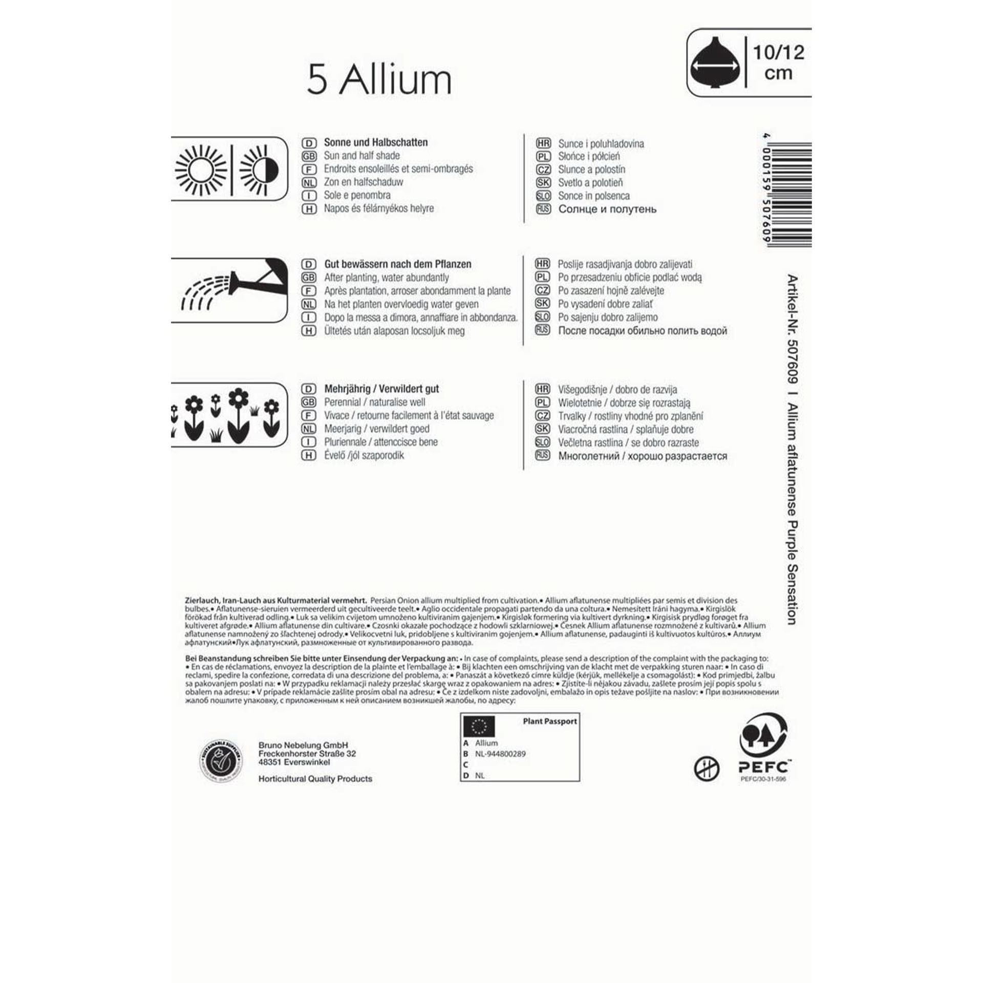 Der Zierlauch 'Purple Sensation' macht seinem Namen alle Ehre und wächst in der Tat zu einer echten Sensation im Garten heran! Viele kleine, sternförmige Einzelblüten fügen sich zu imposanten lilafarbenen Blütenbällen mit einem Durchmesser von rund 10cm zusammen. Eine ideale Nahrungsquelle für Bienen und andere Insekten. Die Blüten von 'Purple Sensation' eignen sich hervorragend als Schnittblumen und bleiben in Vasen lange haltbar. Auch getrocknet sind sie eine schöne Dekoration.