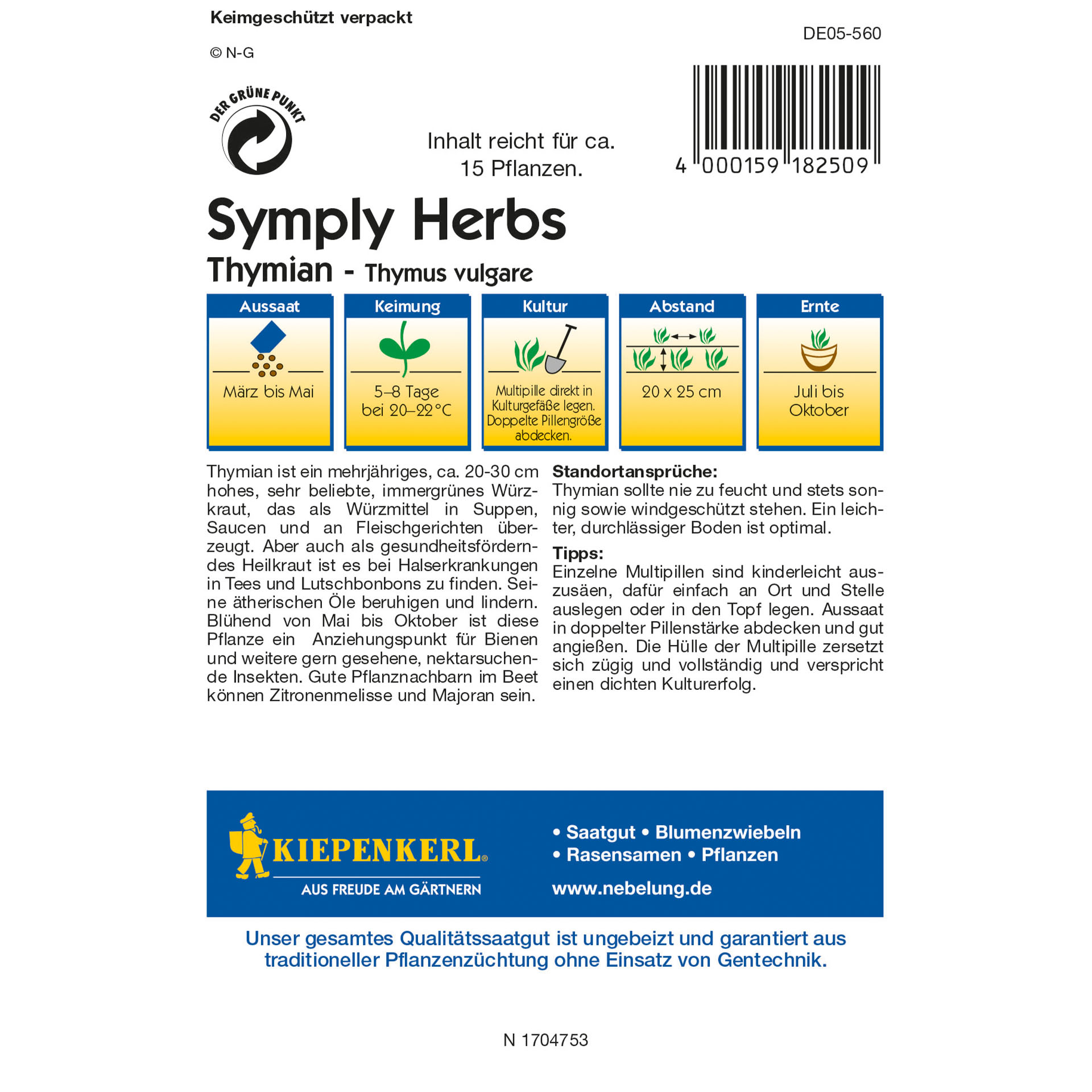 Die Multipille mit dem Thymian-Saatgut zersetzt sich in der Erde, der Thymian keimt und wächst. Es erreicht eine Wuchshöhe von 20-30cm. Von Mai bis Oktober erscheinen rosa Blüten, ein wahrer Magnet für Bienen, Hummeln und andere Insekten.