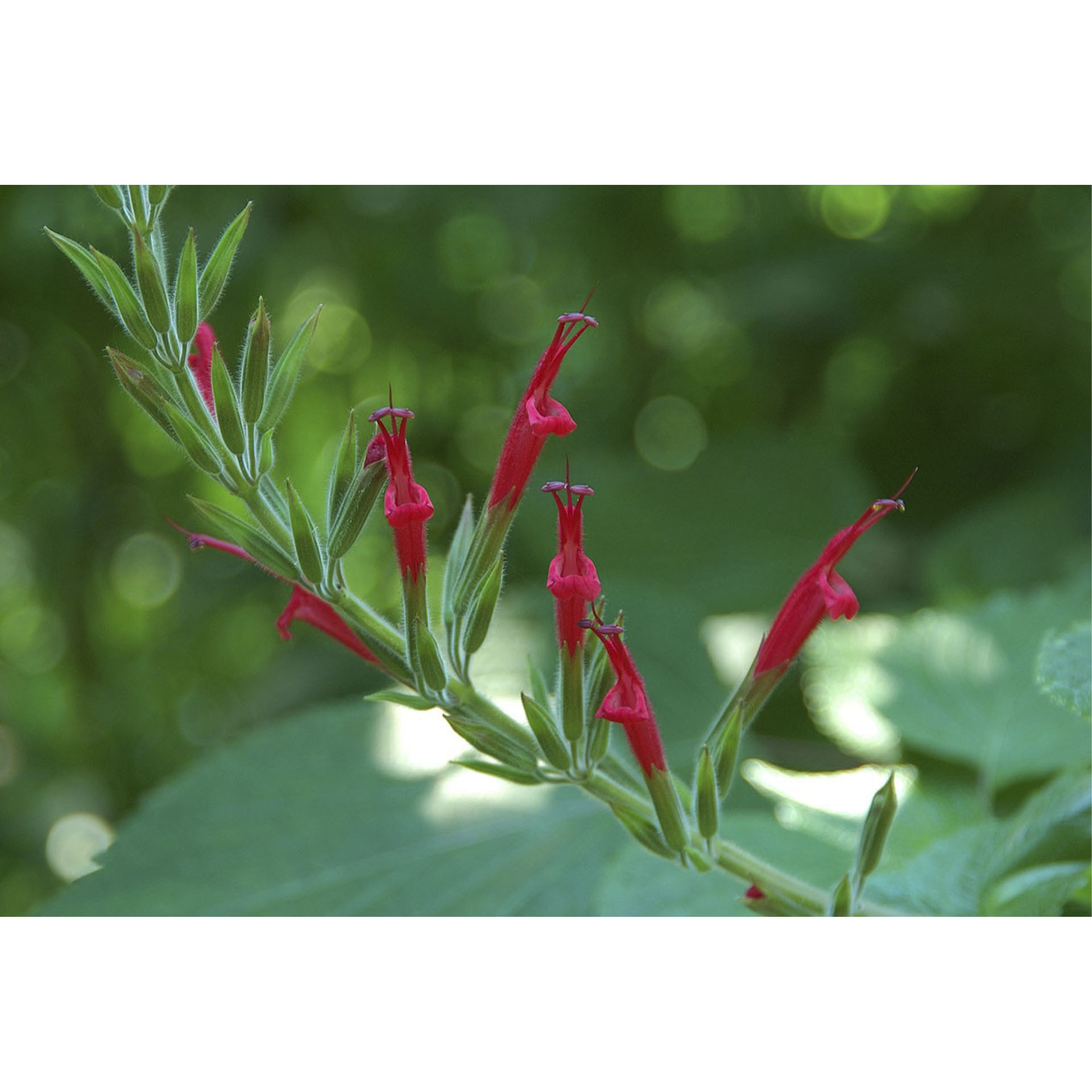Der Ananas-Salbei ist eine robuste und äußerst wüchsige Salbeiart, die auch in kühlen Sommern im Freien gedeiht und im Spätsommer meist schon zu einem stattlichen Busch herangewachsen ist, stammt aus dem Hochland von Mexiko. Die karminroten Blüten erscheinen zu einer ungewöhnlichen Zeit: Erst im Oktober bis November. Sie sind genauso essbar wie die Blätter und ein angenehmes Gewürz, das zu vielen süßen wie salzigen Speisen passt. Schon bei leichter Berührung entströmt ein zartes Aroma – wie frische Ananas. Wuchshöhe 60-120cm.