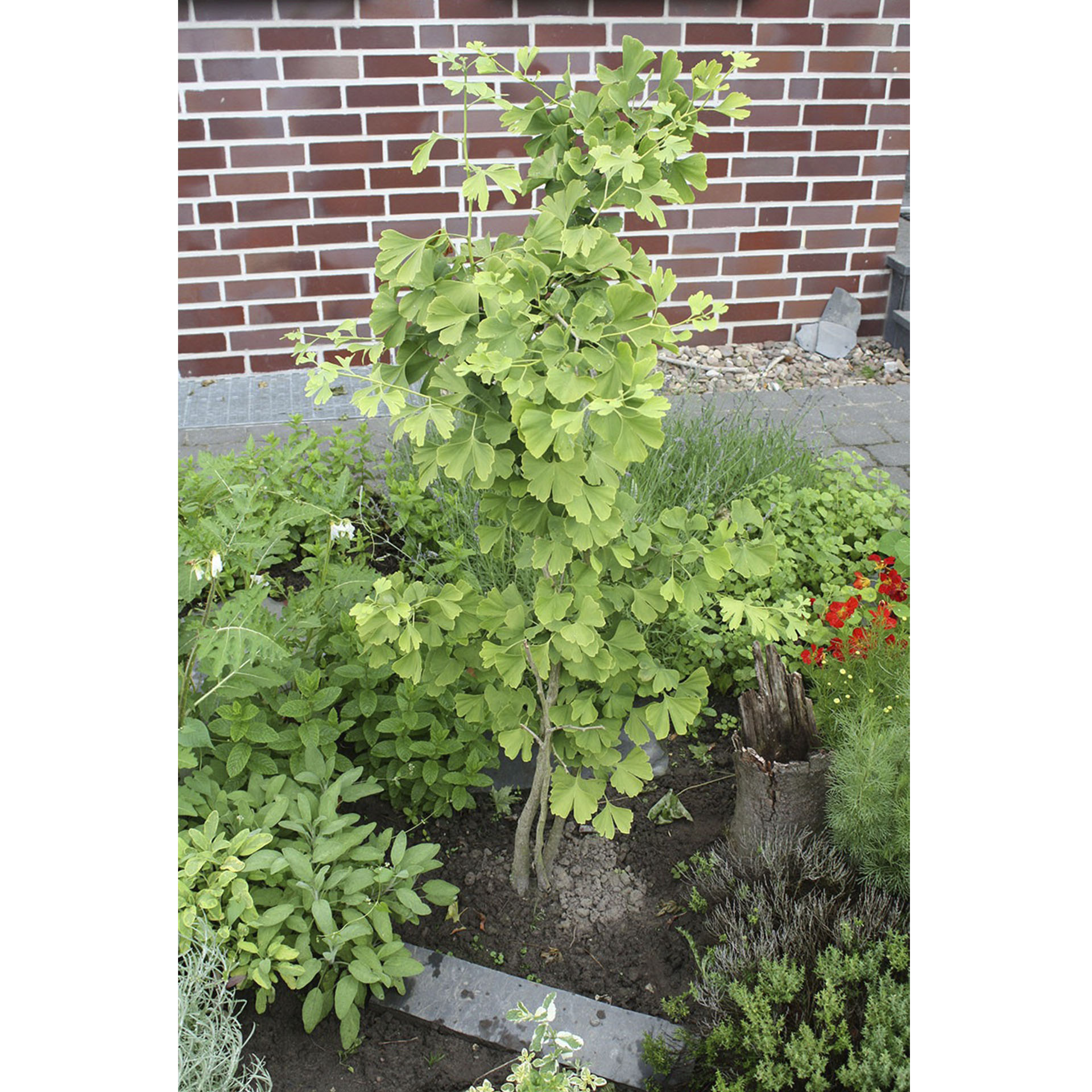 Der Ginkgo ist möglicherweise der älteste Baum der Erde. Er gehört zur Familie der Ginkgoaceae, deren Ursprünge sich über 250 Millionen Jahre und schon zu Zeiten der Dinosaurier, zurückverfolgen lassen. In Korea steht ein Ginkgobaum mit einer gigantischen Höhe von 64 Metern und einem Durchmesser von 4,45 Metern. Sein geschätztes Alter soll über 1000 Jahre betragen. In seiner asiatischen Heimat gilt der Ginkgo als heiliger Baum. Er ist Symbol für ein langes Leben. Wuchshöhe bis 4m.