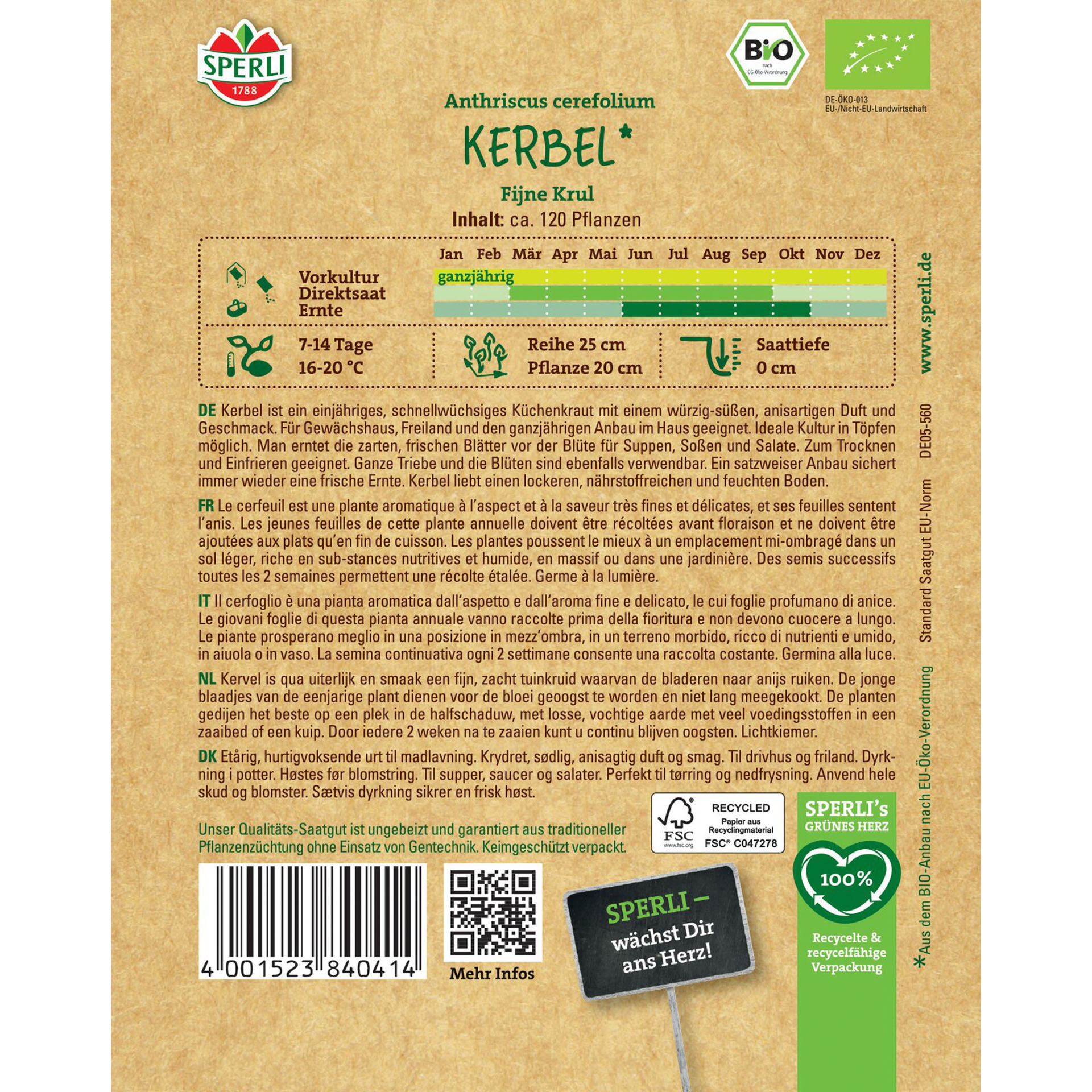 BIO Kerbel 'Fijne Krul', Kräutersamen