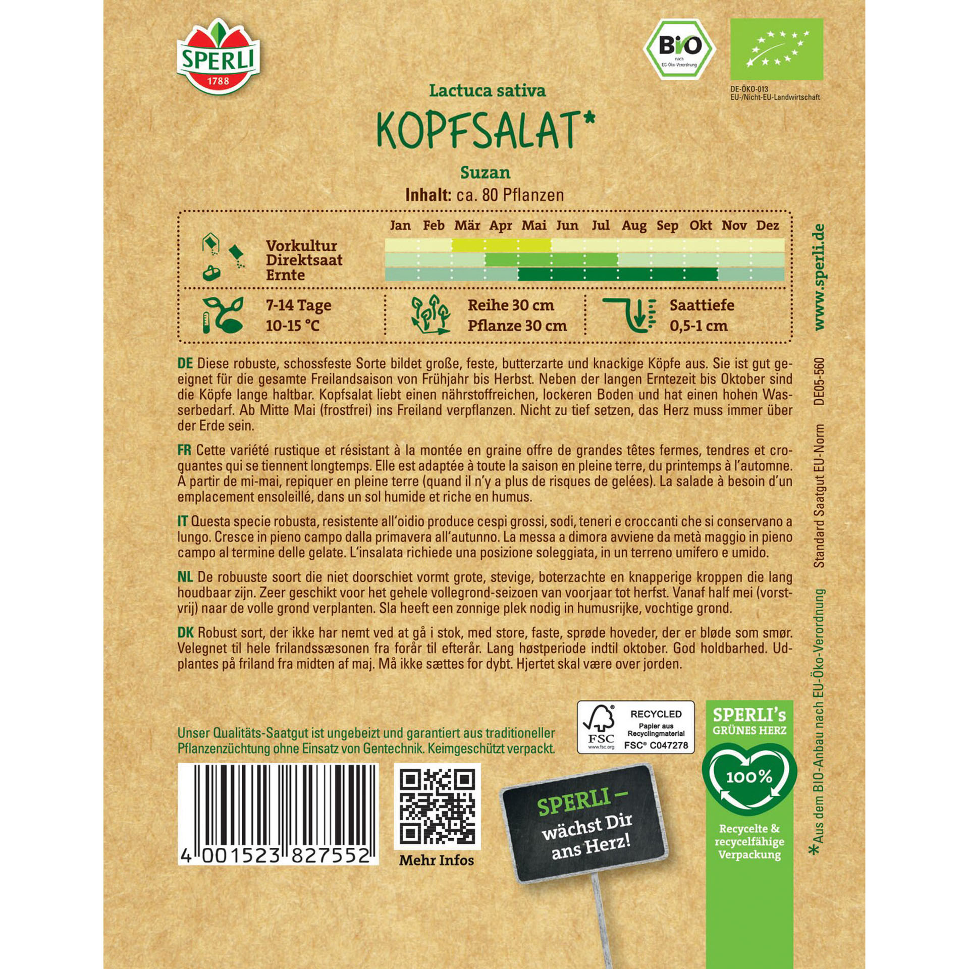 Eigenschaften "BIO Kopfsalat 'Suzan', Gemüsesamen"