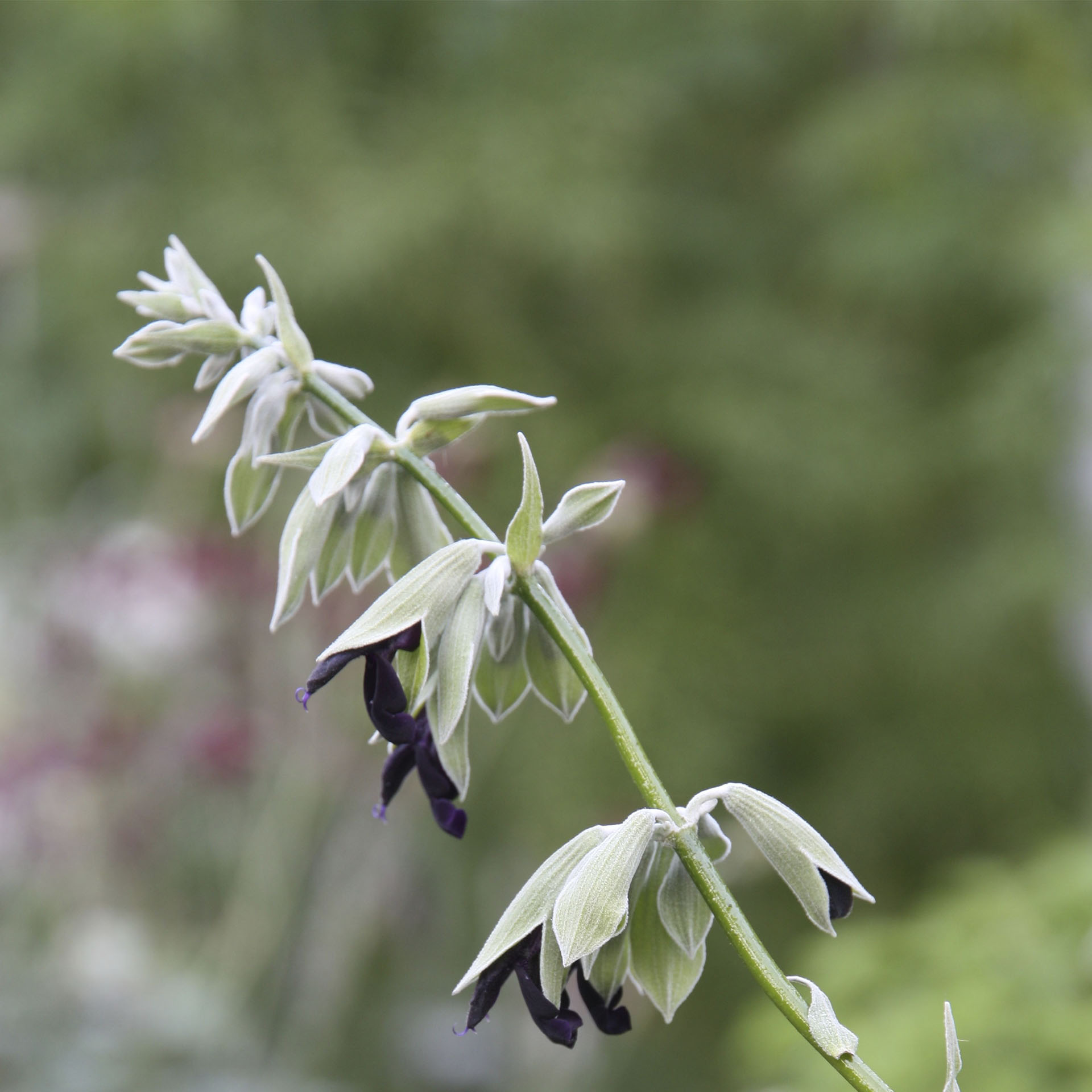 Der Peruanische Salbei ist eine der schönsten Salbeiarten. Die auf der Oberseite grün glänzenden und auf der Unterseite weiß filzigen Blätter stehen in einem schönen Kontrast zu den tiefvioletten fast schwarzen Blüten. Die Blätter duften sehr frisch-fruchtig nach Eukalyptus und Apfel. Etwas ganz außergewöhnliches bei dieser Salbeiart sind die schwarzvioletten Blüten. Man kann sie sogar essen. Blüten abzupfen und genießen – lecker! Wuchshöhe 40-60cm.