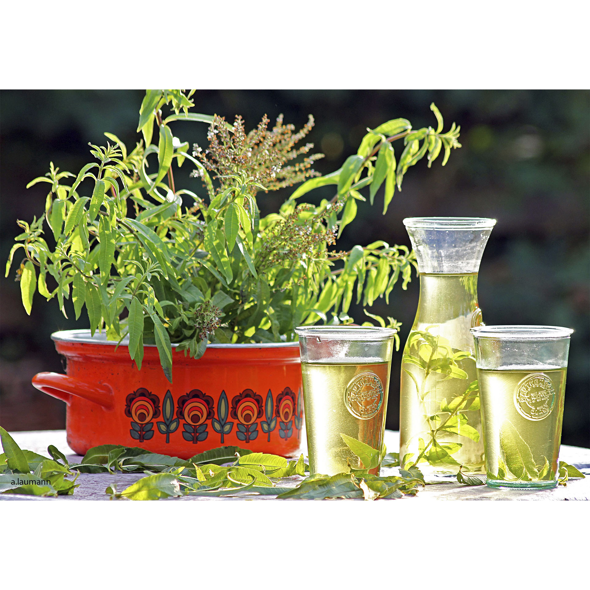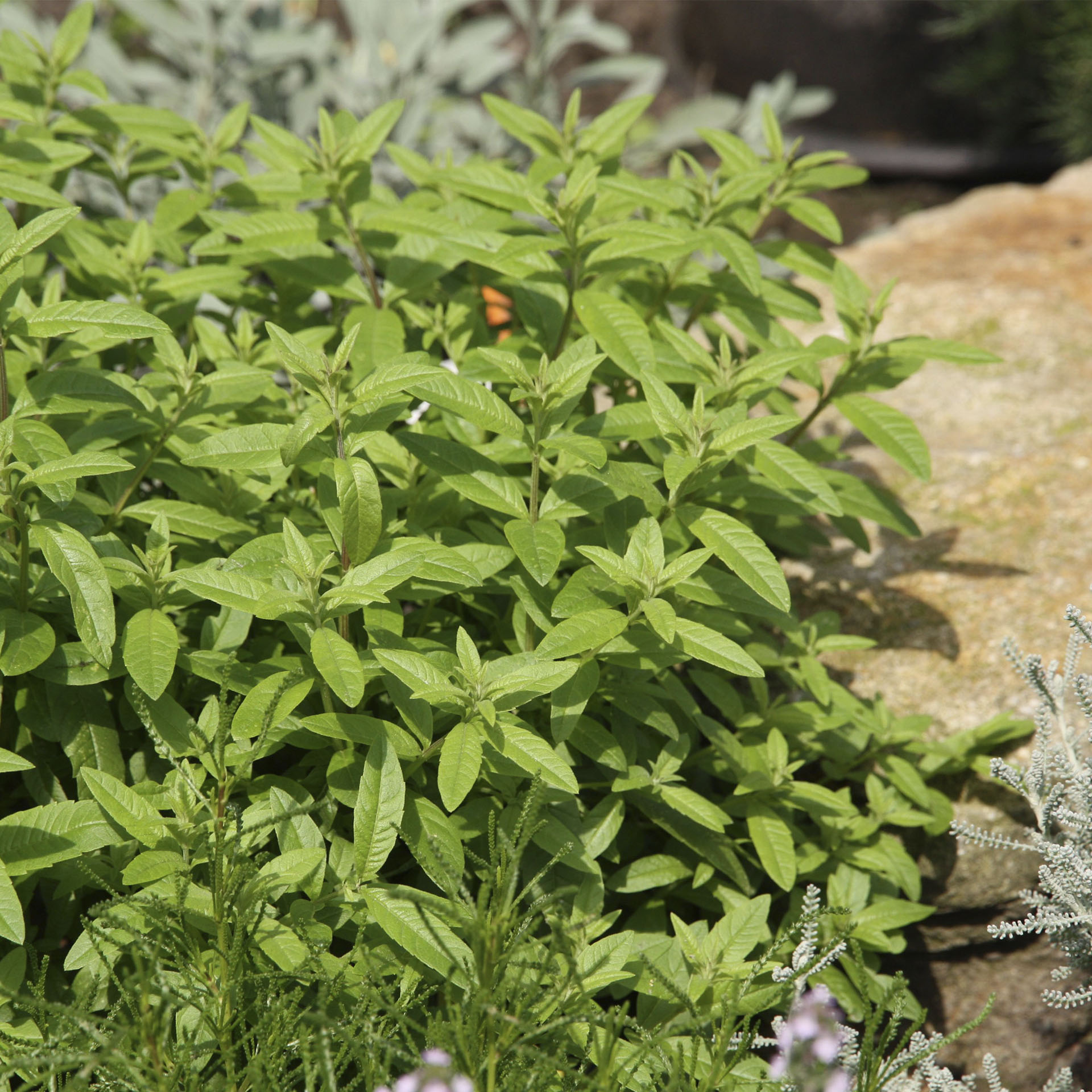 Die Zitronenverbene stammt aus den Regionen Chiles und Uruguay und ist dort heute noch wild zu finden. Sie hat ein unverwechselbar stark zitroniges Aroma. Nach Europa kam diese Verbenenart erst Ende des 17. Jahrhunderts durch spanische Seefahrer. Im Sommer können Getränke mit frischer Zitronenverbene verfeinert werden. Aber auch im Winter ist ein Tee aus den getrockneten Blättern sehr wohltuend. Ein Dampfbad mit Zitronenverbenen-Blättern entspannt und belebt zugleich. Wuchshöhe 80-100cm.