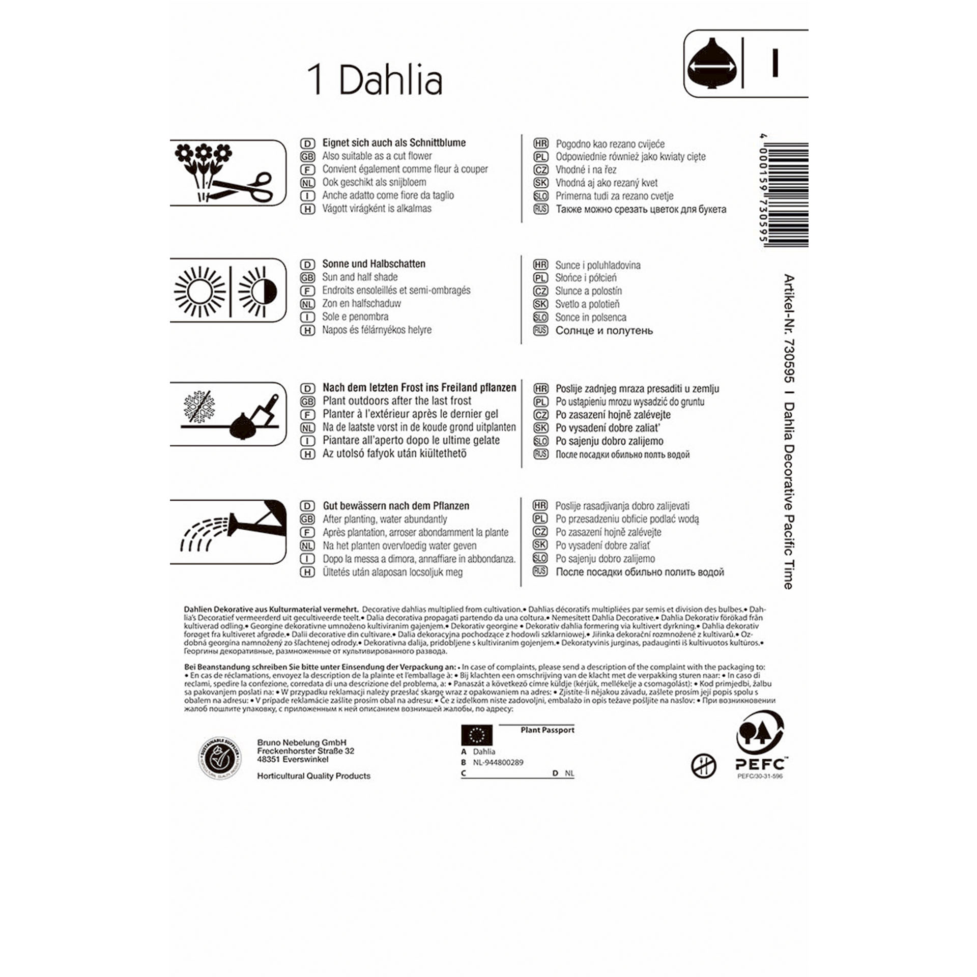 Eigenschaften "Dekorative Dahlie 'Pacific Time', Blumenzwiebel"