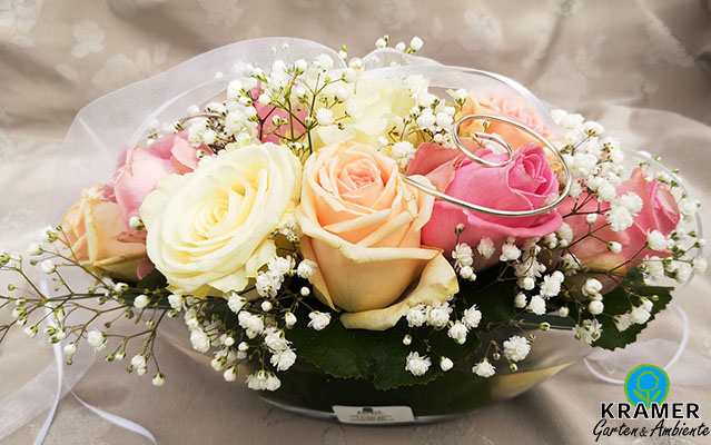 - Blumenvasen oder Blumenarrangements in der Mitte des Tisches