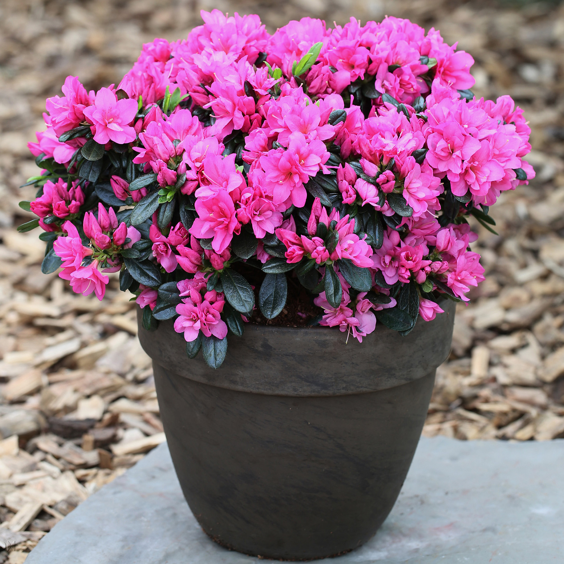 Die Sorte Melina gehört zur Gruppe der Japanischen Azaleen. Die leuchtend pinkfarbenen Blüten bedecken die Pflanze über und über, wenn sie im Mai-Juni erscheinen. Der Wuchs ist kompakt und das Laub bleibt zum Großteil im Winter haften.