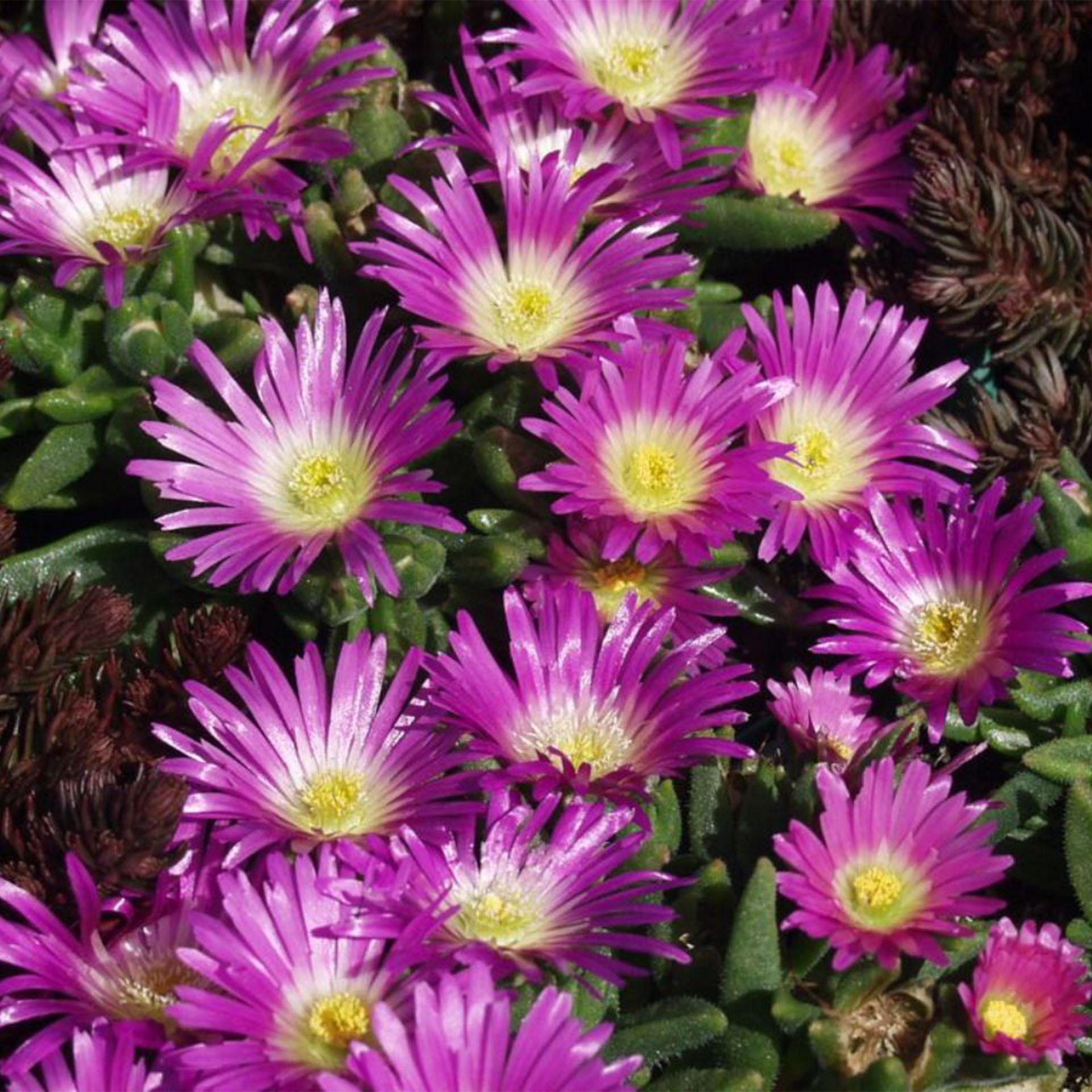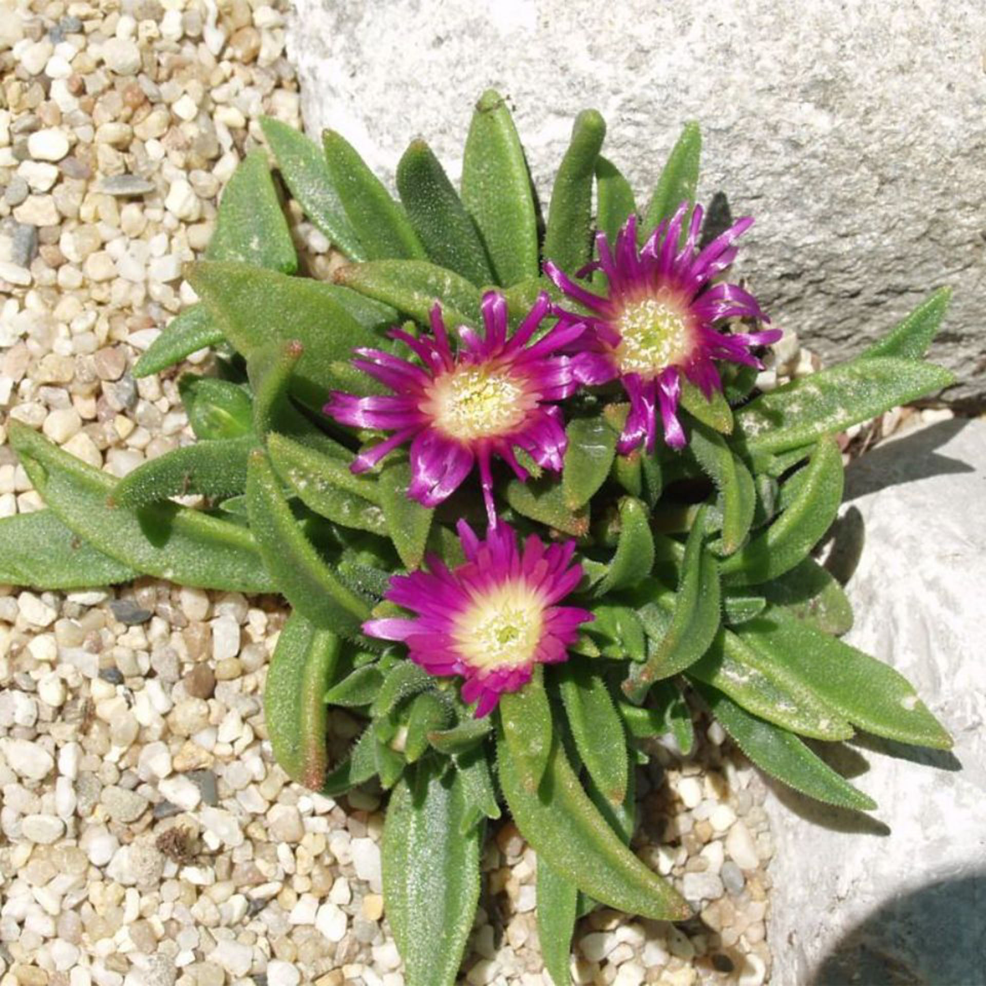 Die Mittagsblume ist eine äußerst pflegeleichte, wintergrüne Staude. Die strahlenförmigen, violetten Blüten erscheinen den ganzen Sommer über und verleihen Ihrem Garten oder Balkon eine farbenfrohe Atmosphäre. Vor Staunässe schützen!
