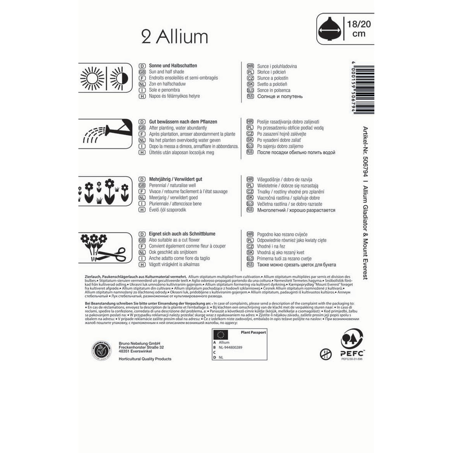 - Zwiebelgröße: 18/20cm